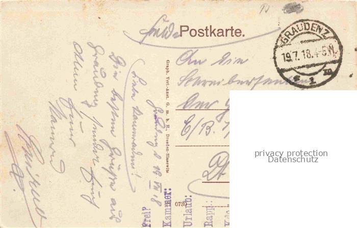 74035262 old postcard Graudenz GRUDZIADZ Westpreussen PL Schlossberg Feldpost postalisch gelaufen Erhaltung siehe scans [FriedD77] KatCode: 11410