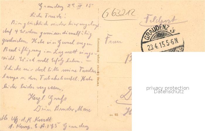 old postcard Graudenz Westpreussen Speicher an der Weichsel postalisch gelaufen Feldpost Erhaltung siehe scans [WerneD78]