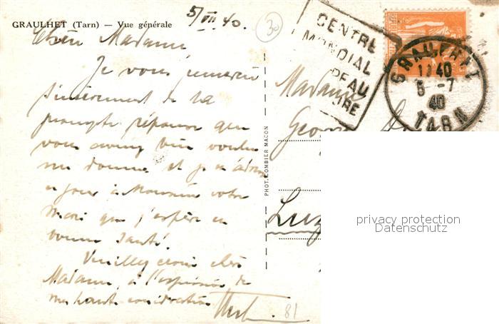 13485518 carte postale Graulhet Vue Generale postalisch gelaufen Erhaltung siehe scans [FriedD77] KatCode: 11170081281105