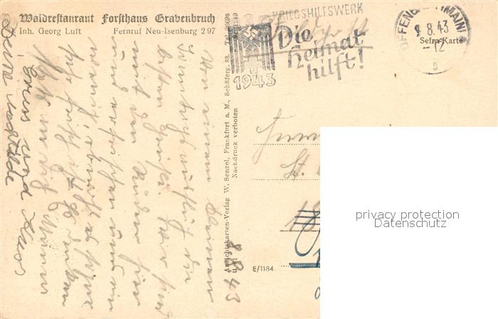 73362155 alte Postkarte Gravenbruch Waldrestaurant Forsthaus postalisch gelaufen Erhaltung siehe scans [LiesaD40] KatCode: 11110006438009