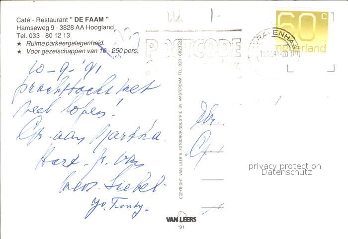 old postcard Gravenhage Cafe Restaurant De Faam Hoogland postalisch gelaufen Erhaltung siehe scans