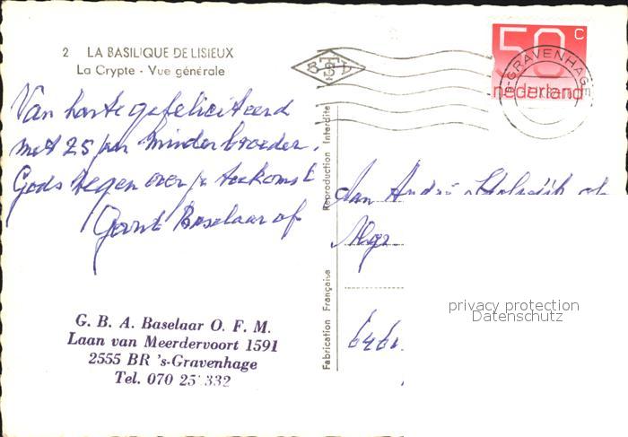 old postcard Gravenhage La Basilique de Lisieux postalisch gelaufen Erhaltung siehe scans