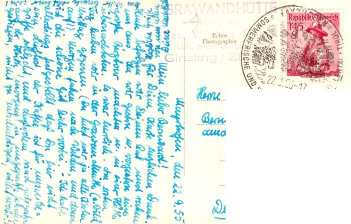 alte Postkarte Grawandhuette 1640m Zillertal AT im Zillertal postalisch gelaufen Erhaltung siehe scans [WerneD78]