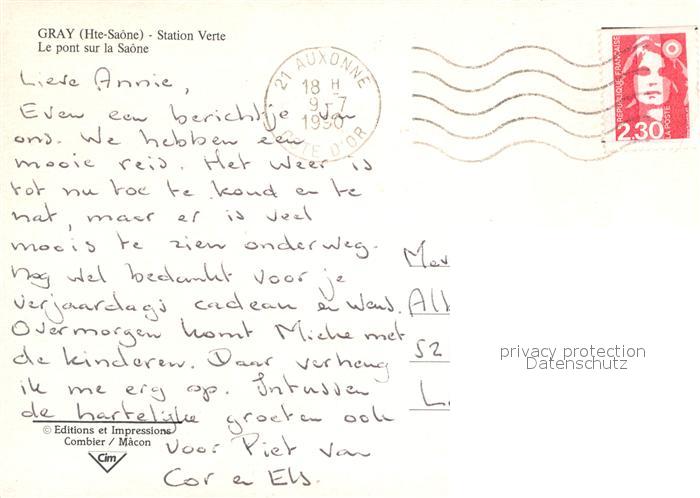 12941802 carte postale Gray Haute Saone Station Verte Le pont sur la Saone postalisch gelaufen Erhaltung siehe scans [WerneD78] KatCode: 11170070270279