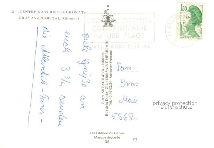 13231289 carte postale Grayan-et-l Hopital Strand Camping Centre Naturiste postalisch gelaufen Erhaltung siehe scans [LiesaD40] KatCode: 11170033433193