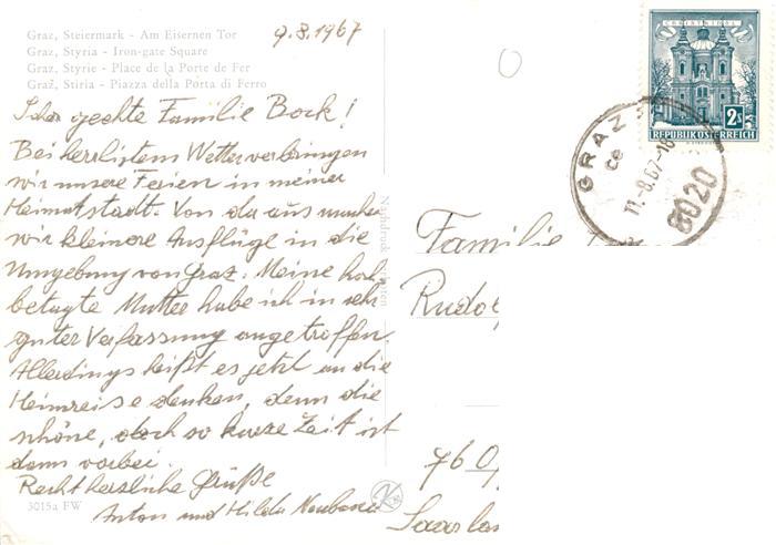 73923019 alte Postkarte Graz Steiermark AT Am Eisernen Tor Brunnen Denkmal postalisch gelaufen Erhaltung siehe scans [FriedD77] KatCode: 11390221060101