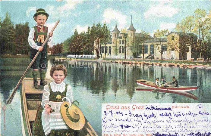 34142837 alte Postkarte GRAZ Steiermark AT Hilmteich Ruderboot Trachten postalisch gelaufen Erhaltung siehe scans [FriedD77] KatCode: 11390221060101