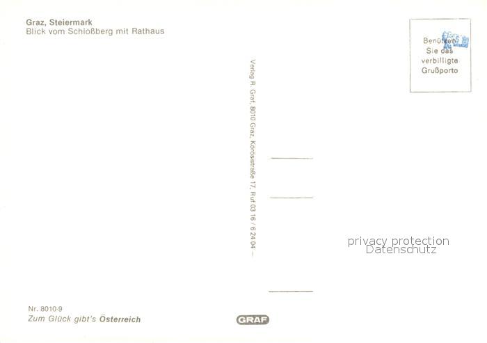73595733 Graz Steiermark Blick vom Schlossberg mit Rathaus postalisch nicht gelaufen Erhaltung siehe scans [LiesaD40] KatCode: 11390221060101