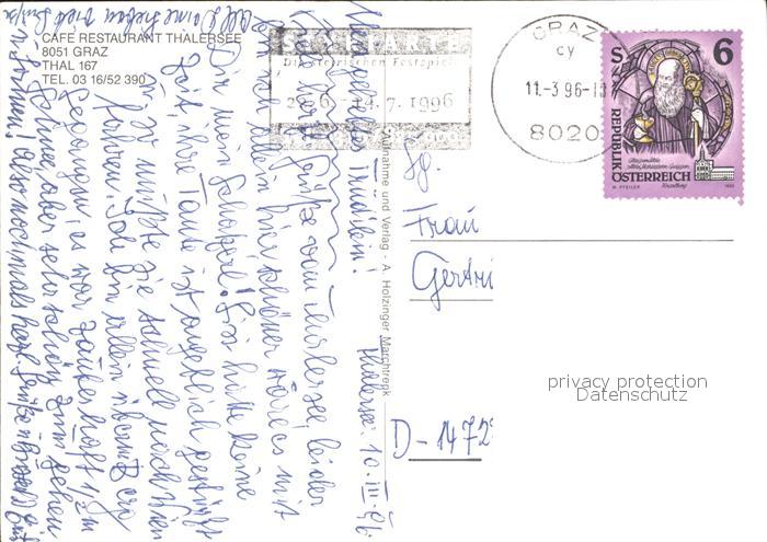 72309214 alte Postkarte Graz Steiermark Cafe Restaurant Thalersee postalisch gelaufen Erhaltung siehe scans KatCode: 11390221060101