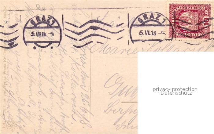 43107581 alte Postkarte Graz Steiermark Die drei Bruecken ueber die Mur Schlossberg Uhrturm postalisch gelaufen Erhaltung siehe scans [FriedD77] KatCode: 11390221060101