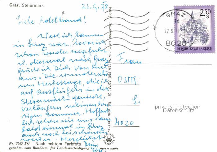 72673383 alte Postkarte Graz Steiermark Fliegeraufnahme postalisch gelaufen Erhaltung siehe scans [FriedD77] KatCode: 11390221060101