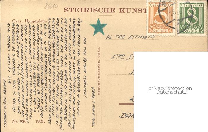 71543836 Graz Steiermark Hauptplatz Denkmal Schlossberg Uhrturm Künstlerkarte KatCode 11390221060101
