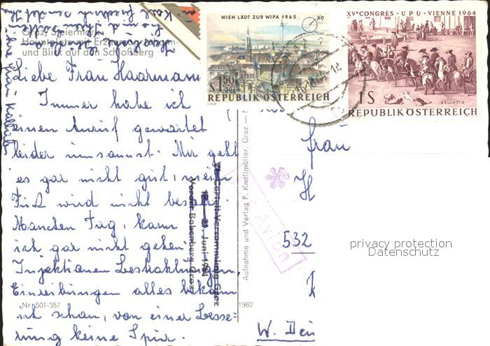 72272911 alte Postkarte Graz Steiermark Hauptplatz Enzherzog Schlossberg postalisch gelaufen Erhaltung siehe scans KatCode: 11390221060101