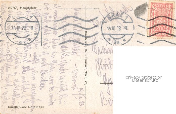 43077341 alte Postkarte Graz Steiermark Hauptplatz Kuenstlerkarte postalisch gelaufen Erhaltung siehe scans [WerneD78] KatCode: 11390221060101