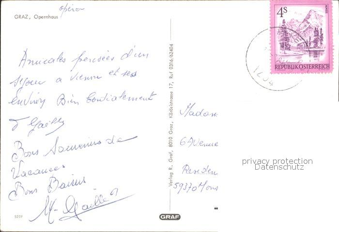 72375003 alte Postkarte Graz Steiermark Opernhaus postalisch gelaufen Erhaltung siehe scans KatCode: 11390221060101