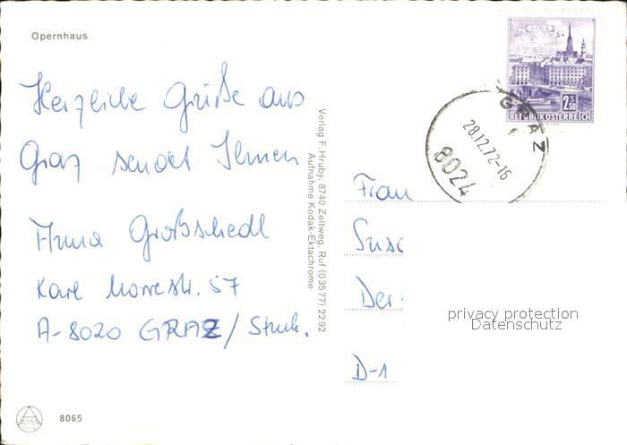 72310602 alte Postkarte Graz Steiermark Opernhaus postalisch gelaufen Erhaltung siehe scans KatCode: 11390221060101