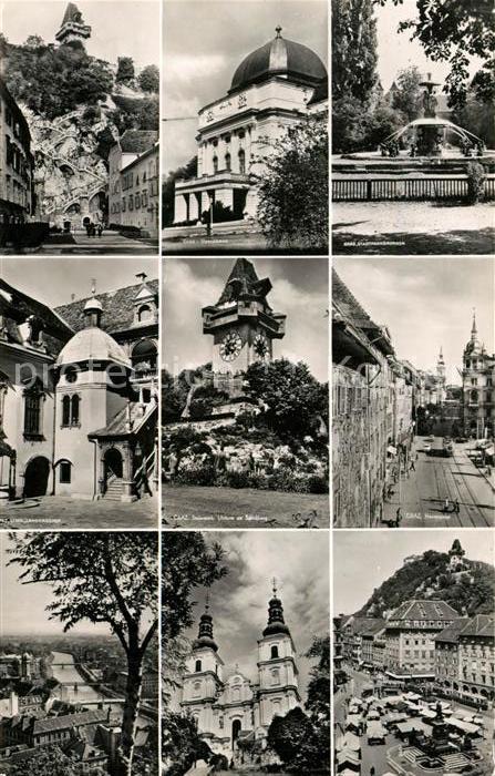 73146129 alte Postkarte Graz Steiermark Opernhaus Uhrturm Schlossberg postalisch gelaufen Erhaltung siehe scans [NatalD47] KatCode: 11390221060101