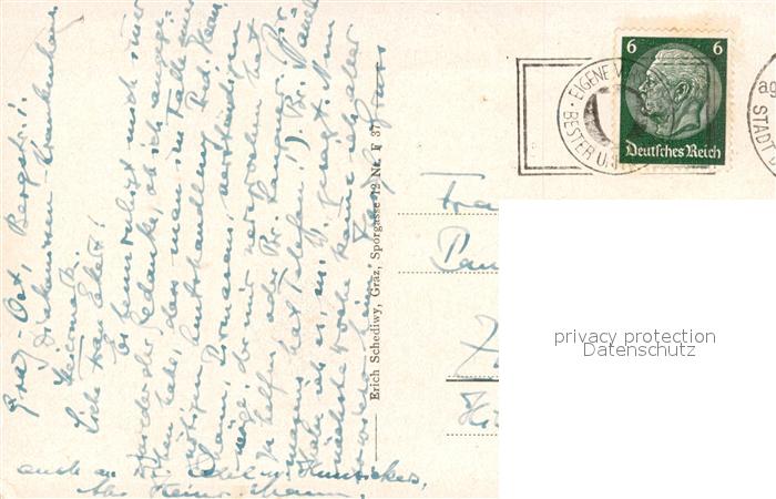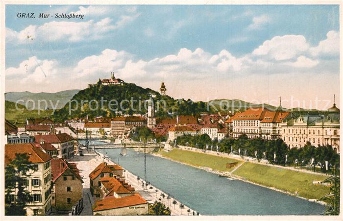 73552669 alte Postkarte Graz Steiermark Panorama Blick ueber die Mur zum Schlossberg postalisch gelaufen Erhaltung siehe scans [FriedD77] KatCode: 11390221060101