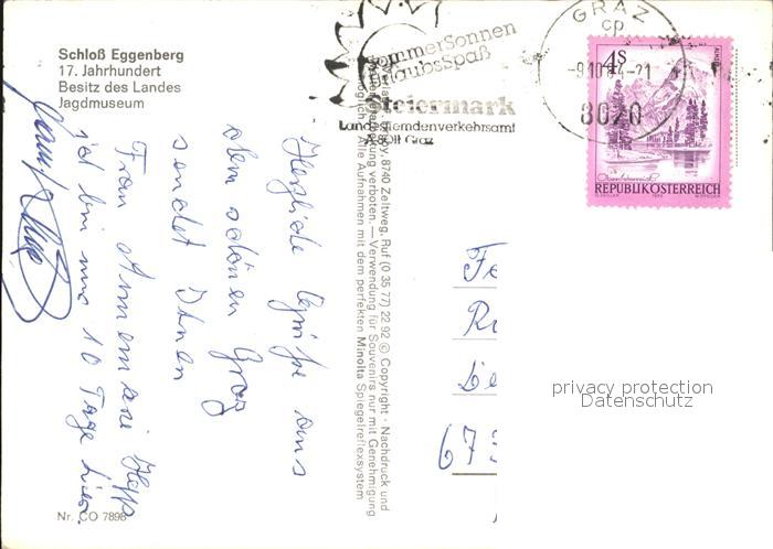 72489978 alte Postkarte Graz Steiermark Schloss Eggenberg Jagdmuseum Pfau postalisch gelaufen Erhaltung siehe scans KatCode: 11390221060101