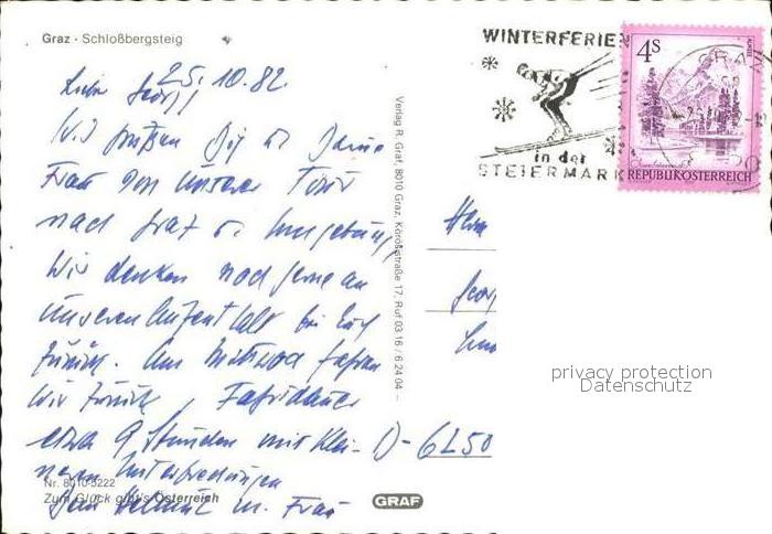 72394895 alte Postkarte Graz Steiermark Schlossbergsteig postalisch gelaufen Erhaltung siehe scans KatCode: 11390221060101