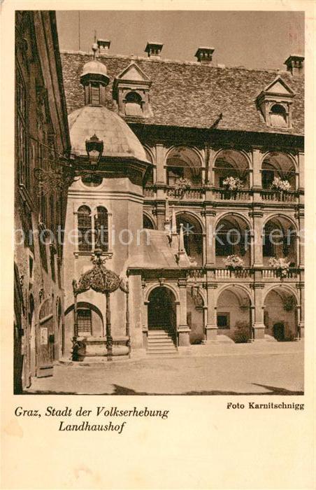 72990668 alte Postkarte Graz Steiermark Stadt der Volkserhebung Landhaushof postalisch gelaufen Erhaltung siehe scans [LiesaD40] KatCode: 11390221060101