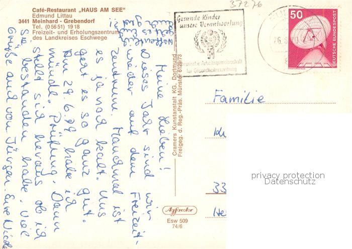 73759134 alte Postkarte Grebendorf Cafe Restaurant Haus am See Fliegeraufnahme postalisch gelaufen Erhaltung siehe scans [WerneD78] KatCode: 11110006636007