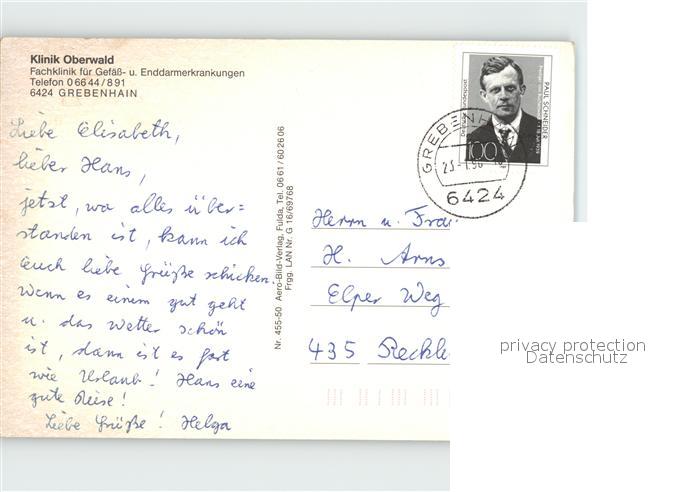 72037077 alte Postkarte Grebenhain Klinik Oberwald Fliegeraufnahme postalisch gelaufen Erhaltung siehe scans KatCode: 11110006535007