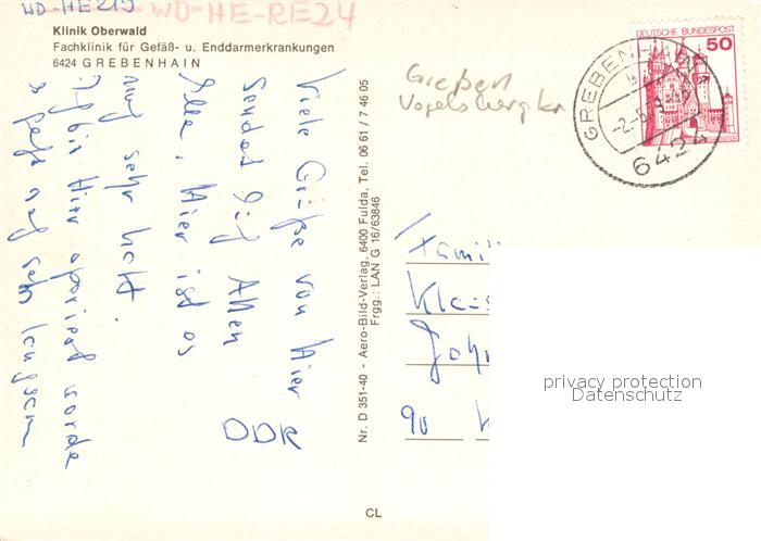 73644065 alte Postkarte Grebenhain Klinik Oberwald postalisch gelaufen Erhaltung siehe scans [WerneD78] KatCode: 11110006535007