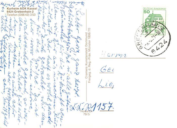 73904476 alte Postkarte Grebenhain Kurheim AOK Kassel Fliegeraufnahme postalisch gelaufen Erhaltung siehe scans [WerneD78] KatCode: 11110006535007
