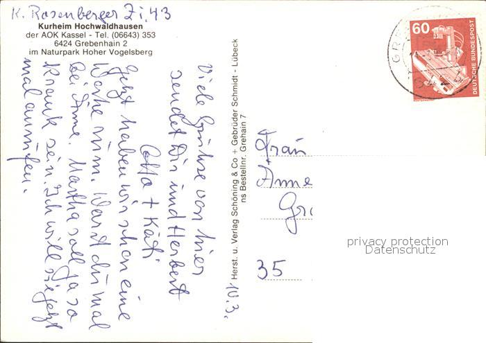 71946569 alte Postkarte Grebenhain Kurheim Hochwaldhausen Speisesaal Hallenbad Liegewiese postalisch gelaufen KatCode: 11110006535007