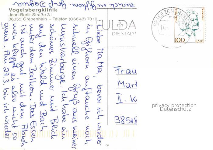 72785195 alte Postkarte Grebenhain Vogelsbergklinik Fliegeraufnahme postalisch gelaufen Erhaltung siehe scans [FriedD77] KatCode: 11110006535007
