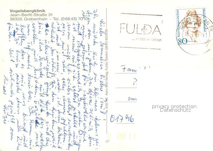 73644066 alte Postkarte Grebenhain Vogelsbergklinik postalisch gelaufen Erhaltung siehe scans [WerneD78] KatCode: 11110006535007