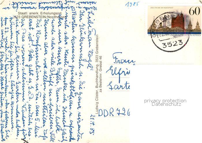 73181939 alte Postkarte Grebenstein Ortsansicht mit Kirche Turm Fachwerkhaeuser postalisch gelaufen Erhaltung siehe scans [FriedD77] KatCode: 11110006633010