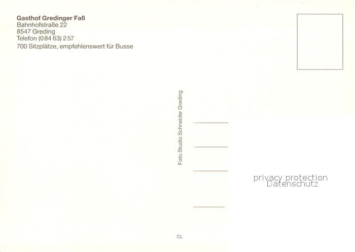 73163738 Greding Gasthof Gredinger Fass postalisch nicht gelaufen Erhaltung siehe scans [FriedD77] KatCode: 11110009576122