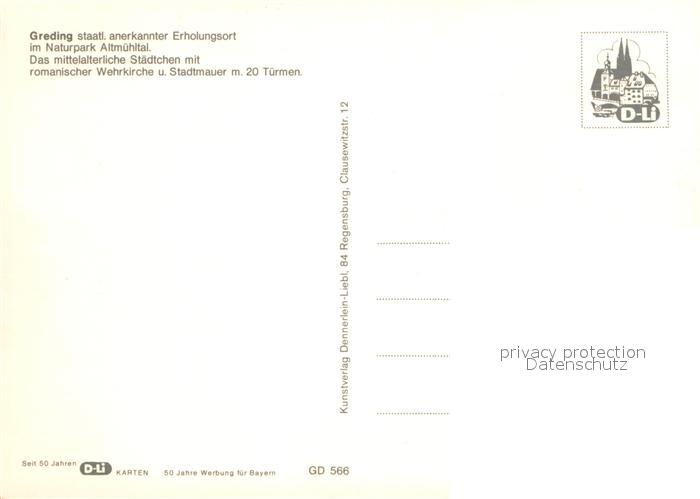 73736702 Greding Kirche Wehrtuerme Schloss Tuerme Stadtmauer Teilansicht mittelalterliche Stadt postalisch nicht gelaufen Erhaltung siehe scans [FriedD77] KatCode: 11110009576122