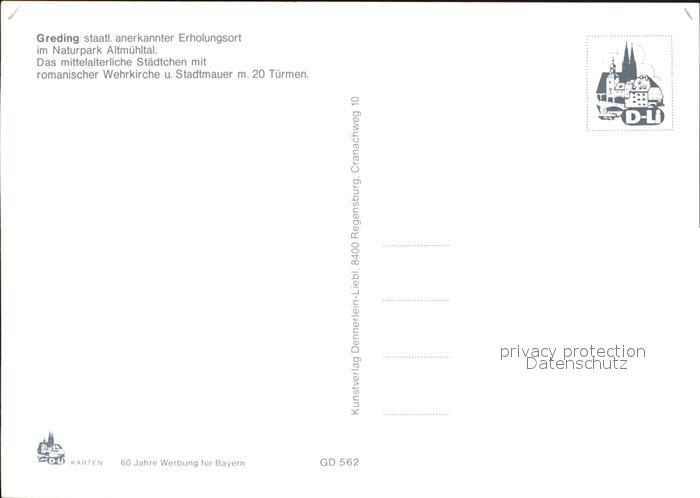 72522605 Greding Rathaus Nuernberger Tor Jagdschloss Eichstaetter Tor Turm der Stadtmauer Hallenbad Gesamt postalisch nicht gelaufen Erhaltung siehe scans KatCode: 11110009576122