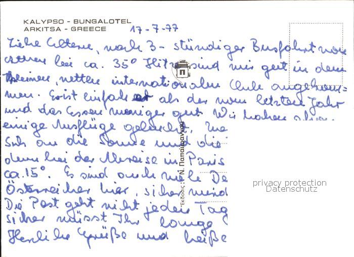 Greece Griechenland Kalypso Bungalotel Arktsa postalisch nicht gelaufen Erhaltung siehe scans