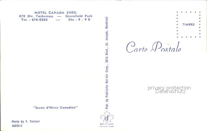 Greenfield Park Quebec Motel Canada postalisch nicht gelaufen Erhaltung siehe scans