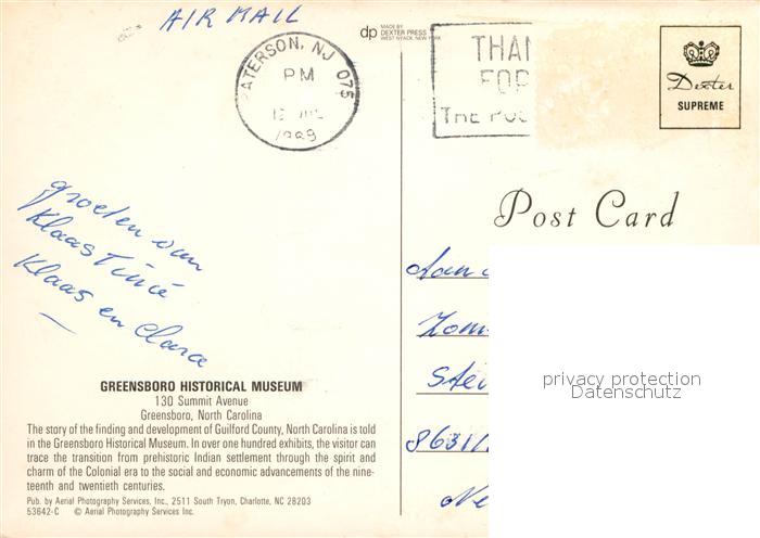 72999448 old postcard Greensboro North Carolina Greensboro Historical Museum postalisch gelaufen Erhaltung siehe scans [WerneD78] KatCode: 14140350000000