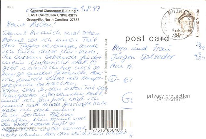 72499981 old postcard Greenville North Carolina General Classroom Building postalisch gelaufen Erhaltung siehe scans KatCode: 14140350000000