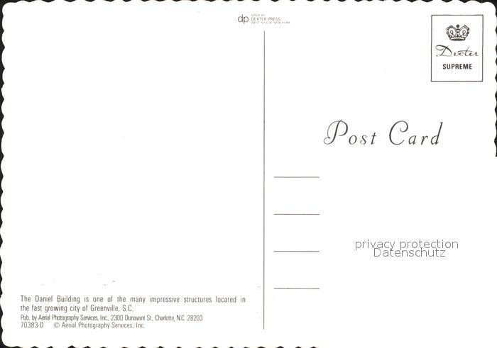 71847862 Greenville South Carolina Fliegeraufnahme Daniel Buiding postalisch nicht gelaufen Erhaltung siehe scans KatCode: 14140430000000