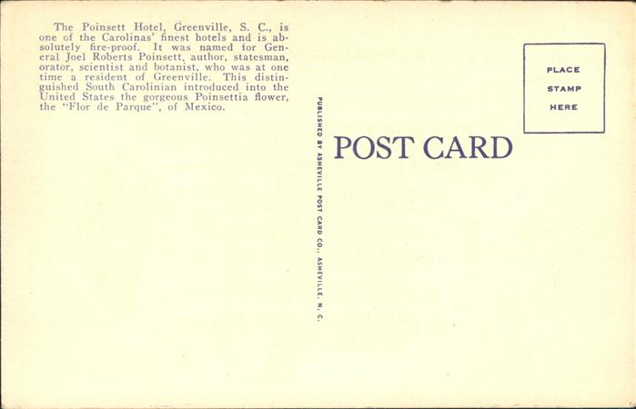 11321311 Greenville South Carolina Poinsett Hotel postalisch nicht gelaufen gute Erhaltung KatCode: 14140430000000