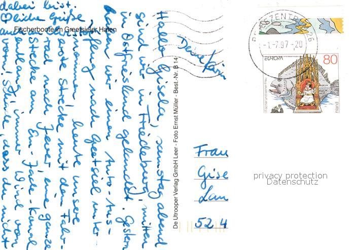 73084108 alte Postkarte Greetsiel Fischerboote Hafen postalisch gelaufen Erhaltung siehe scans [KathaD81] KatCode: 11110003452014