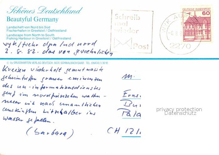 72699529 alte Postkarte Greetsiel Fischerhafen postalisch gelaufen Erhaltung siehe scans [WerneD78] KatCode: 11110003452014