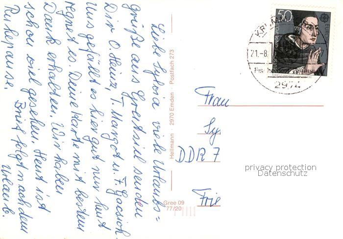 73599876 alte Postkarte Greetsiel Fischkutter Hafen Kirche postalisch gelaufen Erhaltung siehe scans [FriedD77] KatCode: 11110003452014