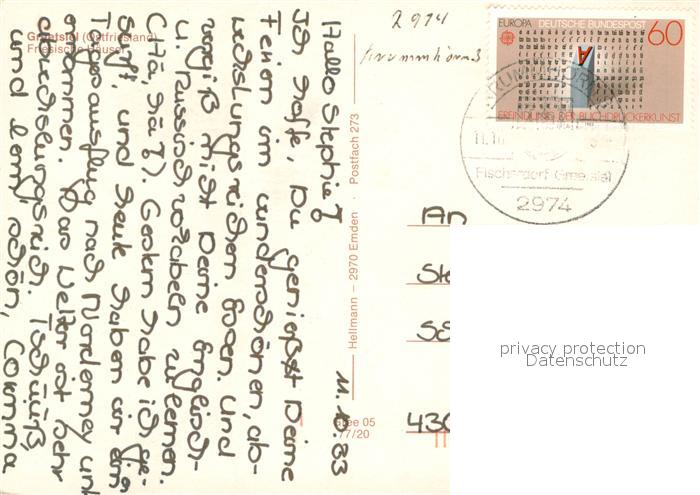 73615568 alte Postkarte Greetsiel Friesische Haeuser postalisch gelaufen Erhaltung siehe scans [WerneD78] KatCode: 11110003452014