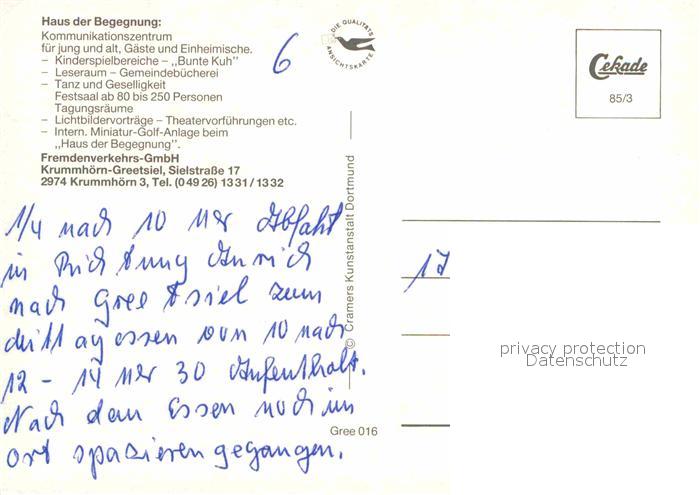 72799334 Greetsiel Haus der Begegnung Kommunikationszentrum postalisch nicht gelaufen Erhaltung siehe scans [FriedD77] KatCode: 11110003452014