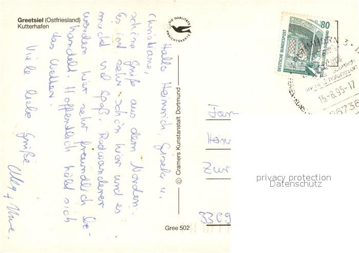73043149 alte Postkarte Greetsiel Kutterhafen Fischkutter postalisch gelaufen Erhaltung siehe scans [FriedD77] KatCode: 11110003452014