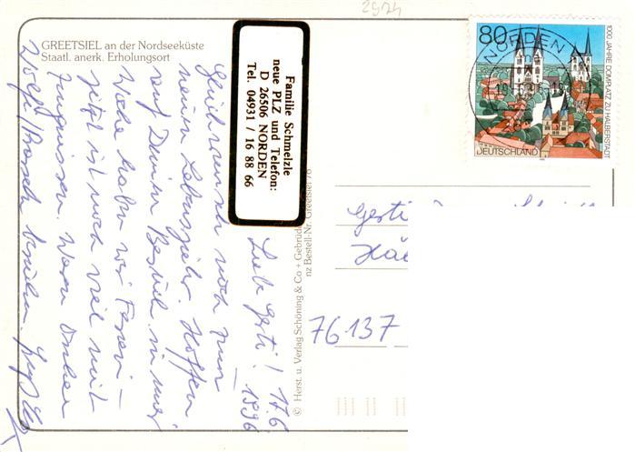 73930112 alte Postkarte Greetsiel Zwillingsmuehlen Hafenstr Kutterregatta Schoepfwerk Muehlenstrasse Fliegeraufnahme Hafen Am Markt Sielstrasse postalisch gelaufen Erhaltung siehe scans [WerneD78] KatCode: 11110003452014