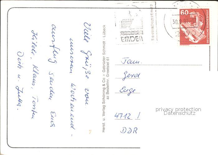 72456306 alte Postkarte Greetsiel Zwillingsmuehlen Krabbenkutter Schoepfwerk Faehrschiff Hafen postalisch gelaufen Erhaltung siehe scans KatCode: 11110003452014